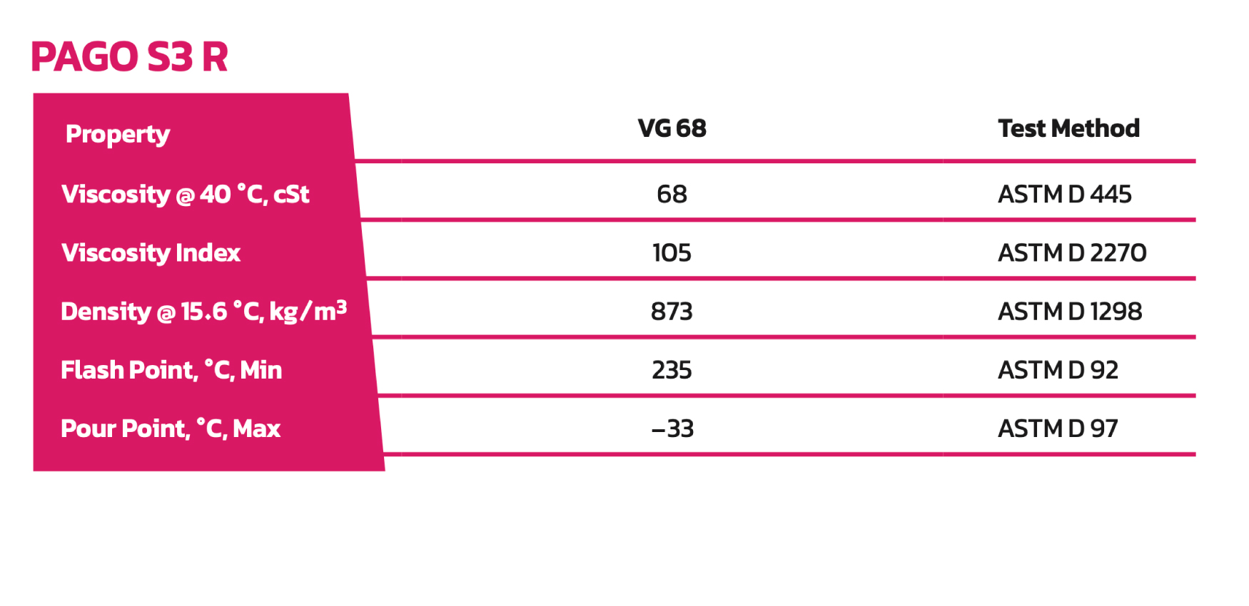 پاگو S3 R برای استفاده در کمپرسورهای دورانی Screw و Vane با حداکثر دمای تخلیه 100 درجه سانتیگراد مناسب میباشد.
